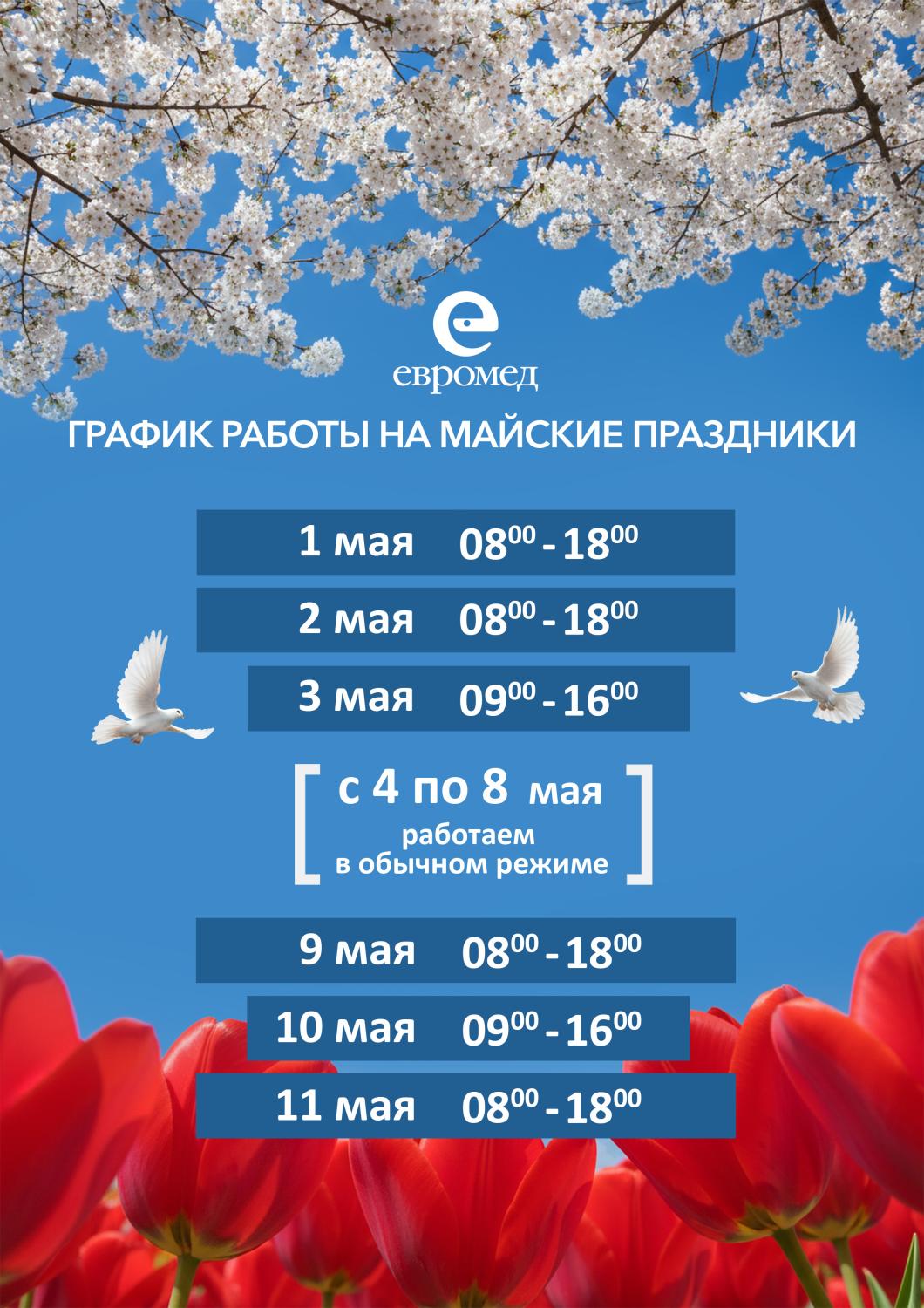 График работы на майские праздники